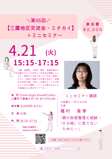 【三鷹地区交流会・ミタカイ】+ミニセミナー